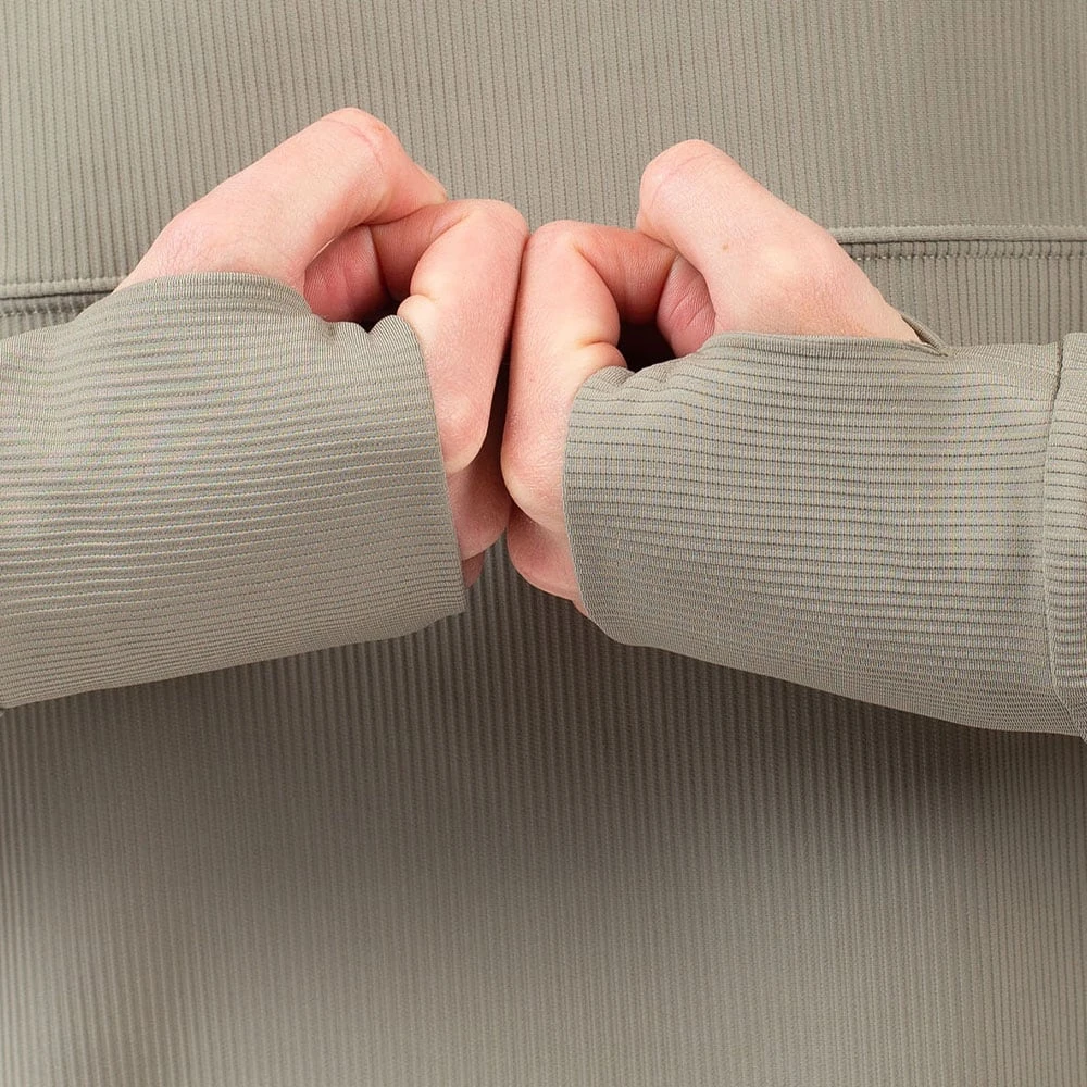 - doppellagige, anliegende Ärmelbündchen mit Daumenloch