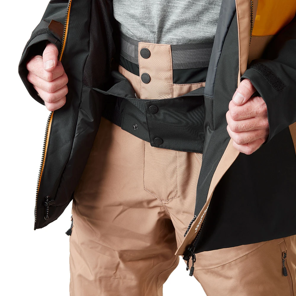 - fester Hüftschneefang mit Druckknopfleiste und Druckknopfschlaufen zur Befestigung an der Schneehose