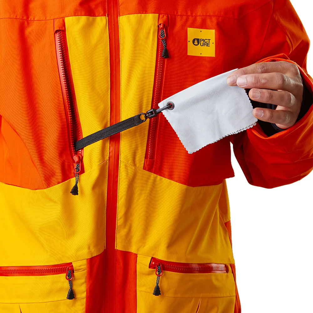 - 2 Brusttaschen mit Reißverschluss, links mit herausnehmbarem Brillenputztuch