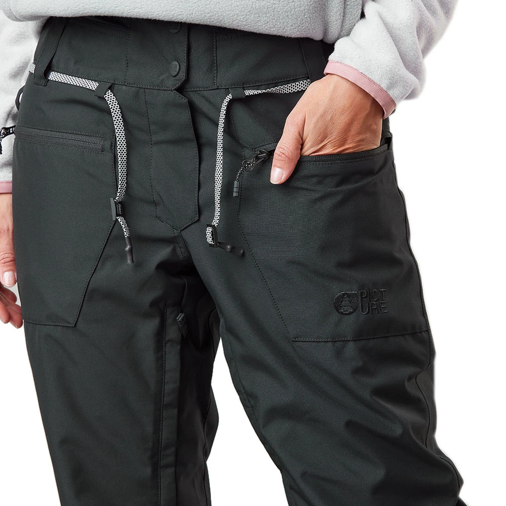 - hoher Bund inklusive festem Hüftschneefang mit elastischem Bündchen, Logodetails und Druckknopfverschluss