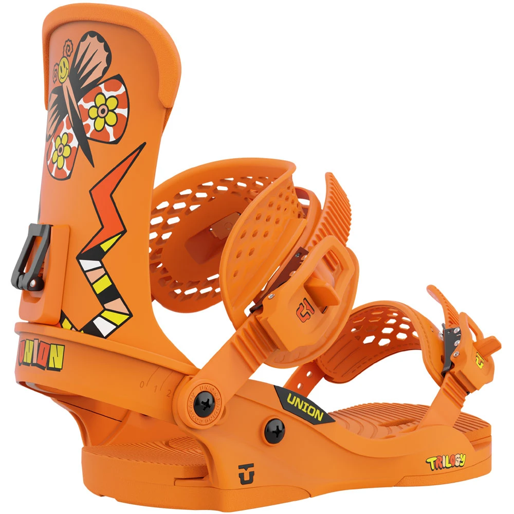 Die Snowboarderin und Künstlerin Ali T. Bruce hat sich auf der Trilogy-Bindung ausgetobt und die orangene Grundfarbe mit Graphics in ihrer unverwechselbaren Handschrift versehen. Auch das Softcase ist entsprechend gestaltet und macht die Limited Edition (nur 250 Paar verfügbar weltweit!) zu einem absoluten Must Have!